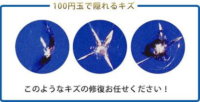 飛び石による自動車のフロントガラスなどのキズは、100円玉程度でしたら交換ではなくリペアという作業で修復できます。
