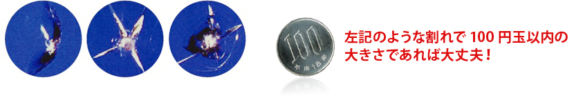 100円玉で隠れる程度なら、自動車のフロントガラスを交換せずに修理ができます。